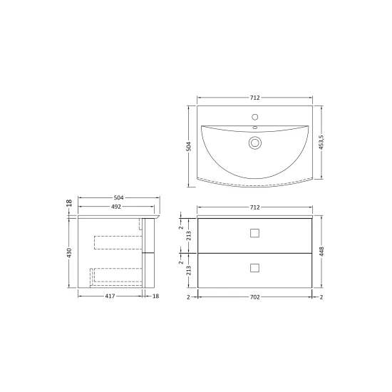 Sarenna Wall Hung 2 Drawer Vanity Unit with Polymarble Basin 700mm