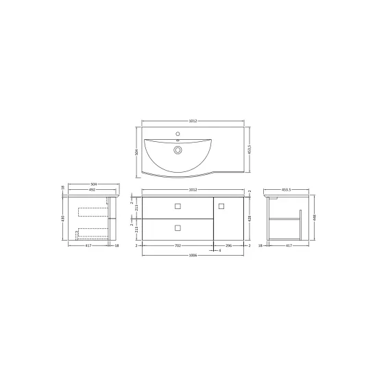 Minimum quantity for "Sarenna Wall Hung Left Hand 2 Drawer 1 Door Vanity Unit with Polymarble Basin 1000mm" is 1.