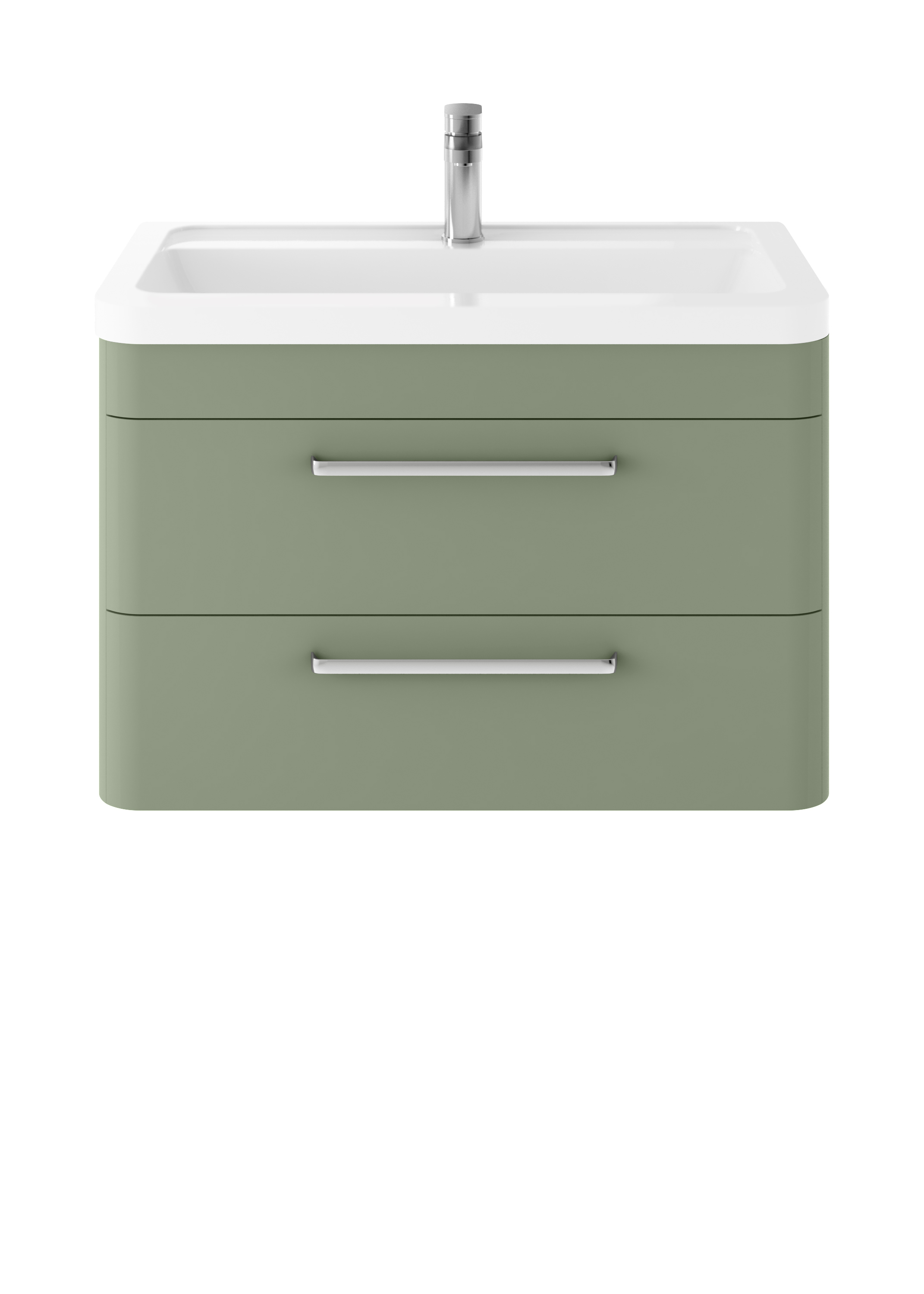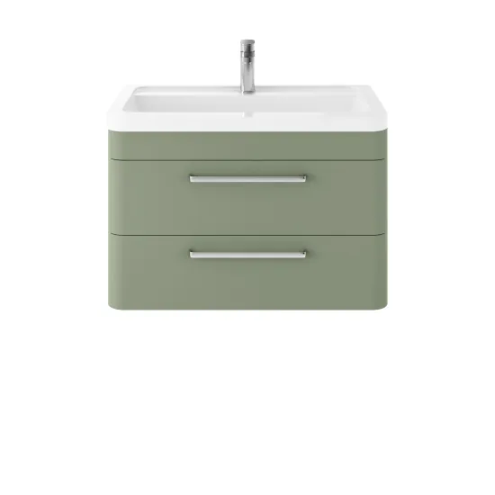 Hudson Reed Solar 800mm Wall Hung 2-Drawer Unit and Ceramic 1 Tap Hole Basin - Fern Green