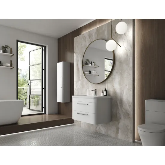 Hudson Reed Solar Wall Hung 2 Drawer Vanity Unit with Polymarble Basin 600mm - Pure White