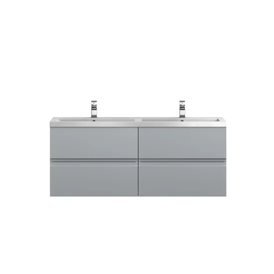 Hudson Reed Urban 1200mm Wall Hung 4-Drawer Vanity & Double Polymarble Basin - Satin Grey