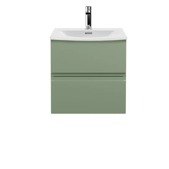 Hudson Reed Urban 500mm Wall Hung 2-Drawer Unit and Curved Basin 1 Tap Hole - Satin Green