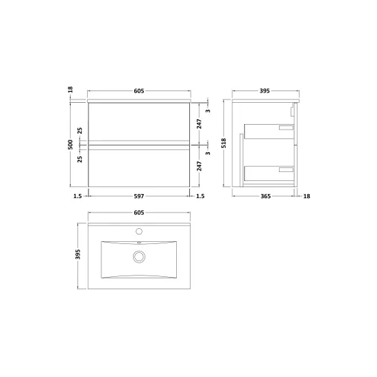 Urban Wall Hung 2 Drawer Vanity Unit with Minimalist Basin 600mm
