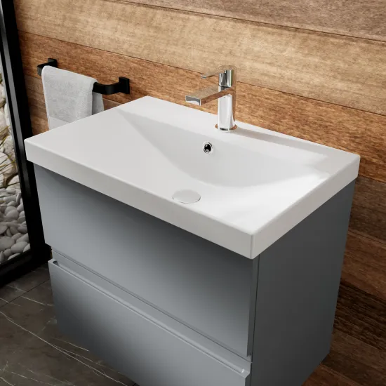 Hudson Reed Urban Wall Hung 2 Drawer Vanity Unit with Thin-Edge Basin 600mm - Satin Grey