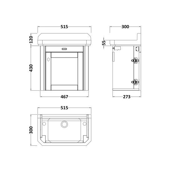 Old London Wall Hung 1 Door Cabinet with 2 Tap Hole Ceramic Basin 515mm - Twilight Blue