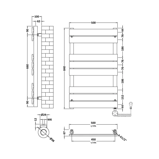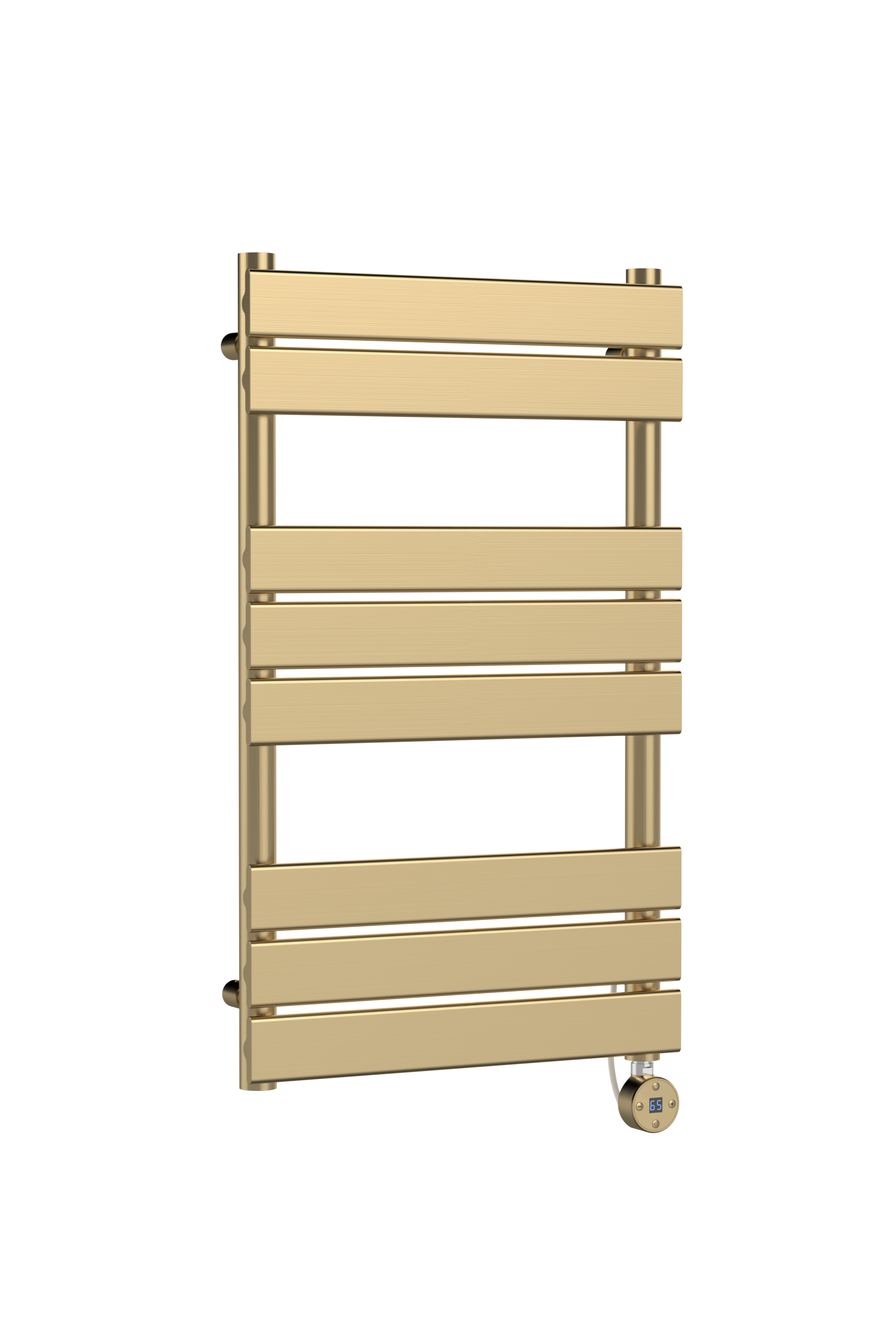 High quality minimalistic design with a stunning Brushed Brass finish. Supplied with fitted 400 watt heating element and thermostatic control. To ensure ease of fitting, these electric-only towel warmers are pre-filled with electrical inhibitor solution, which helps protect the internal walls of the radiator. Backed by a 2 year guarantee.