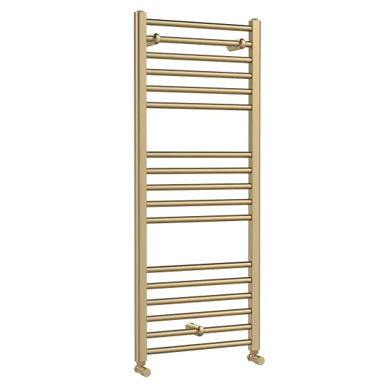 nuie Lorica Straight Towel Radiator with Round Rails 1200mm x 500mm - Brushed Brass