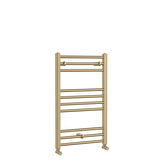 nuie Lorica Straight Towel Radiator with Round Rails 800mm x 500mm - Brushed Brass
