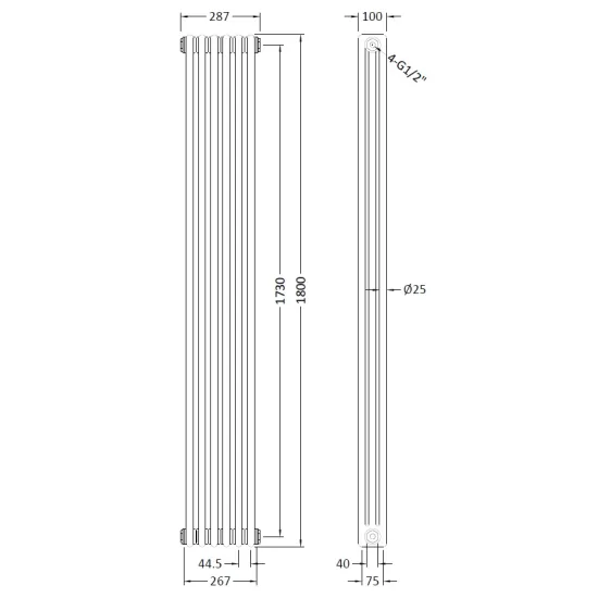 nuie Colosseum Triple Column Traditional Radiator 1800 x 287mm - High Gloss White