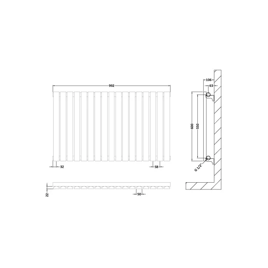 nuie Sloane Horizontal Single Panel Radiator 600 x 992mm - Anthracite