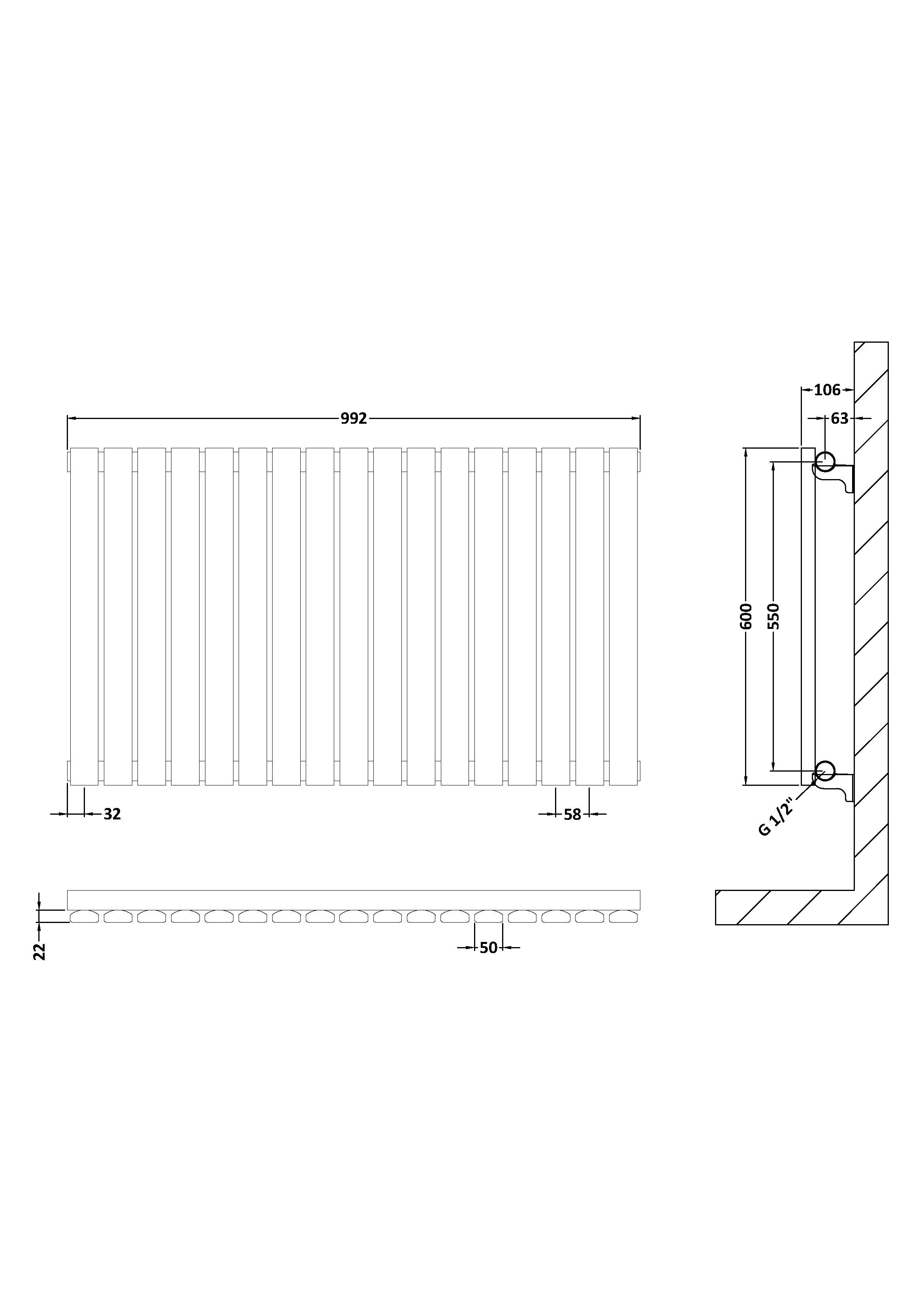 nuie Sloane Horizontal Single Panel Radiator 600 x 992mm - Satin White