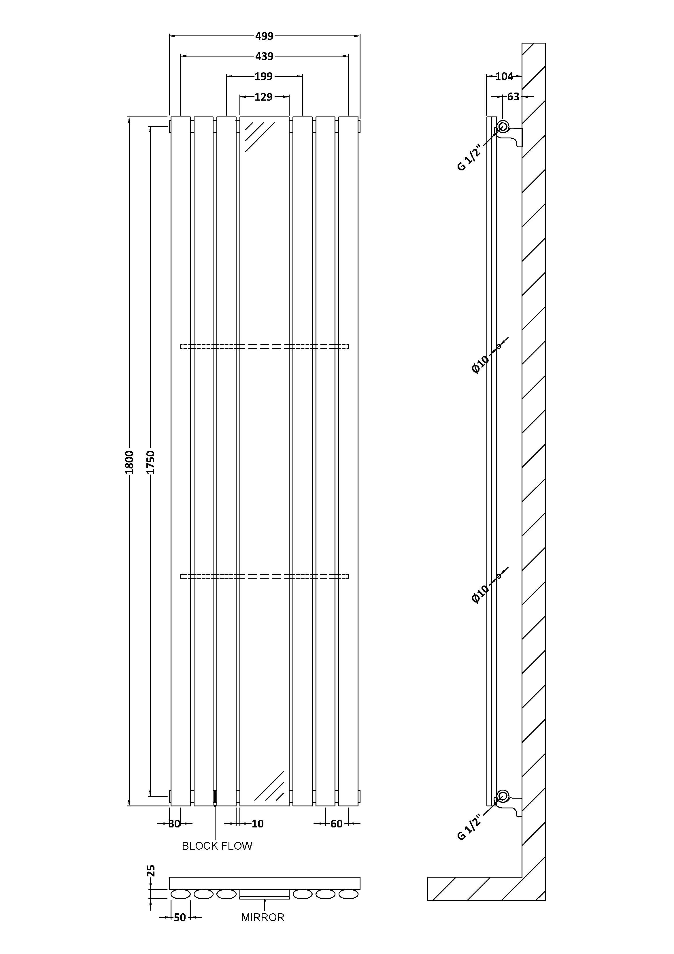 Single Panel Radiator With Mirror 1800 x 499mm