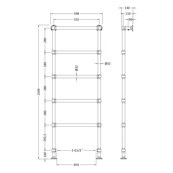 Hudson Reed Heated Towel Rails Countess 1550 x 600mm - Chrome
