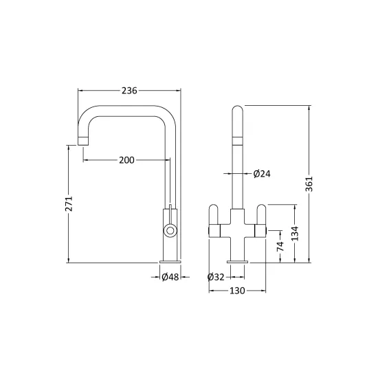 Kitchen Taps Kosi Mono Basin Twin Lever Square Basin Tap & Rinser