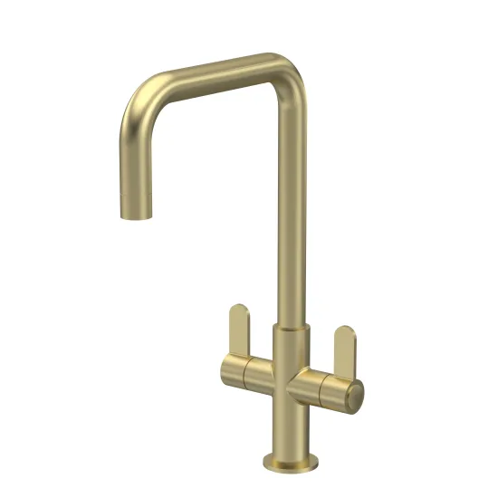 nuie Kitchen Taps Kosi Mono Basin Twin Lever Square Basin Tap & Rinser - Brushed Brass