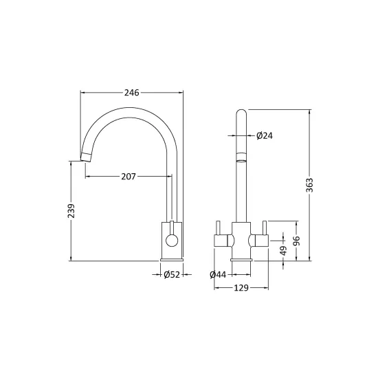 Kitchen Taps Lachen Mono Basin Twin Lever Round Basin Tap