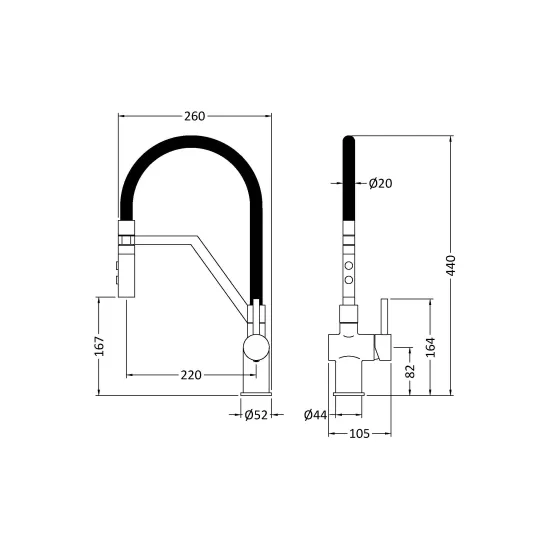 Kitchen Taps Ravi Mono Basin Single Lever Round Basin Tap & Rinser