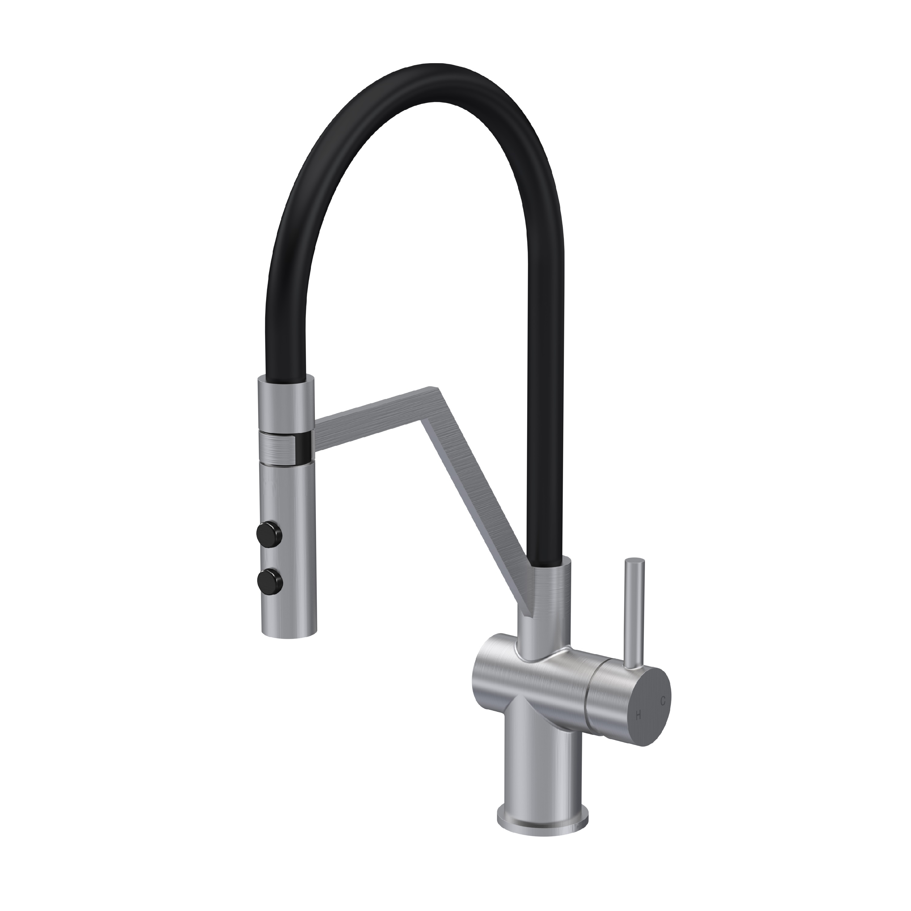 nuie Kitchen Taps Ravi Mono Basin Single Lever Round Basin Tap & Rinser - Brushed Nickel