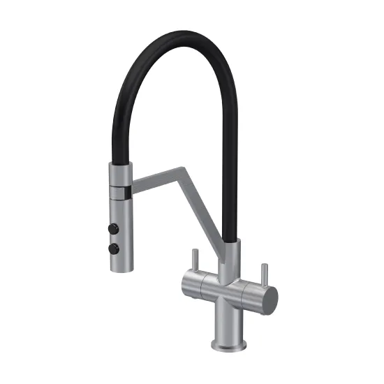 nuie Kitchen Taps Ravi Mono Basin Twin Lever Round Basin Tap & Rinser - Brushed Nickel