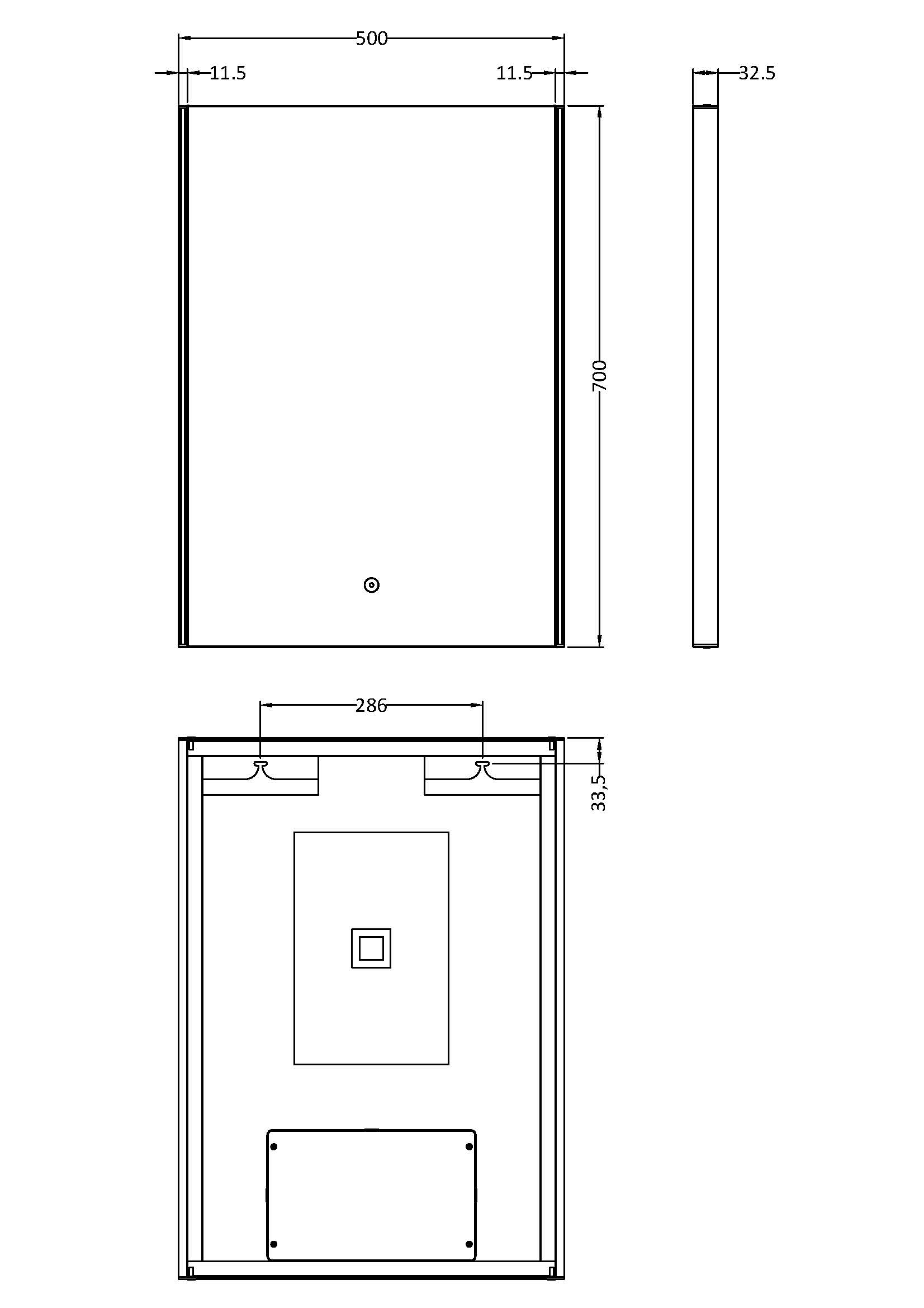 nuie Anser 700mm x 500mm LED Mirror Touch Sensor