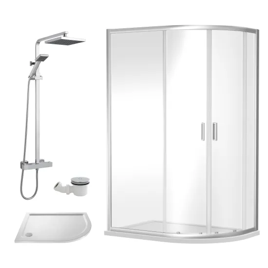 1000x800 Chrome Offset Quad, Tray & Shower Kit - Right Hand