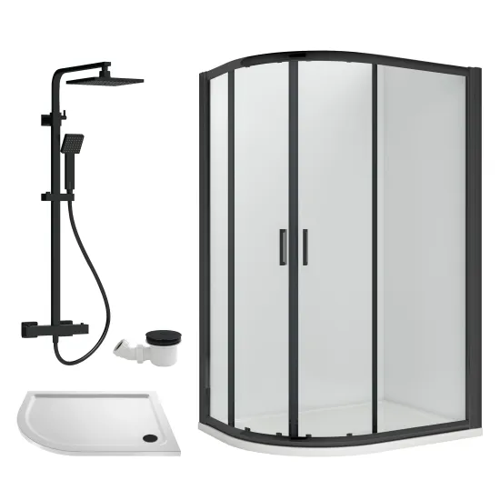Nuie 1200x800 Black Offset Quad, Tray & Shower Kit - Left Hand