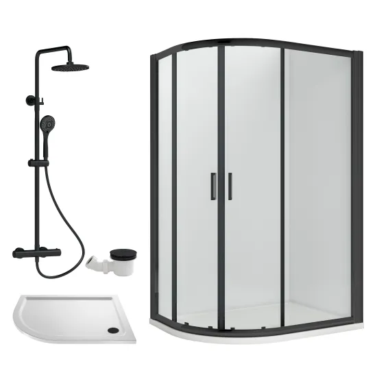 Nuie 1200x800 Black Offset Quad, Tray & Shower Kit - Left Hand