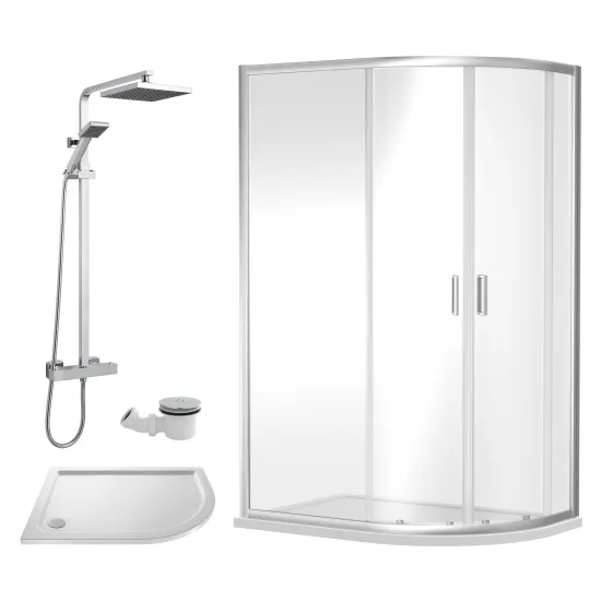 Nuie 1200x800 Chrome Offset Quad, Tray & Shower Kit - Right Hand