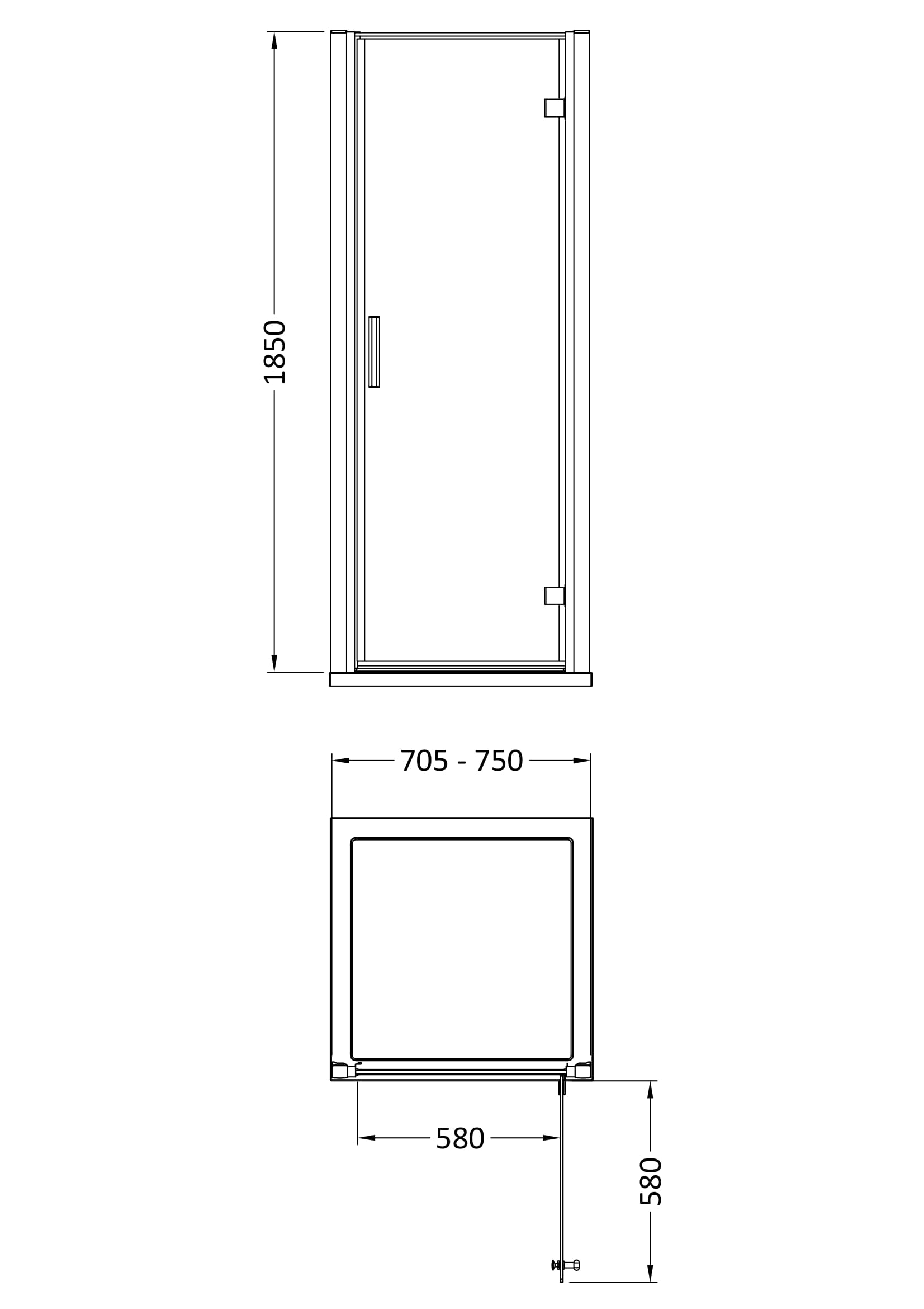 nuie Pacific 760mm Hinged Door - 6mm Glass - Polished Chrome