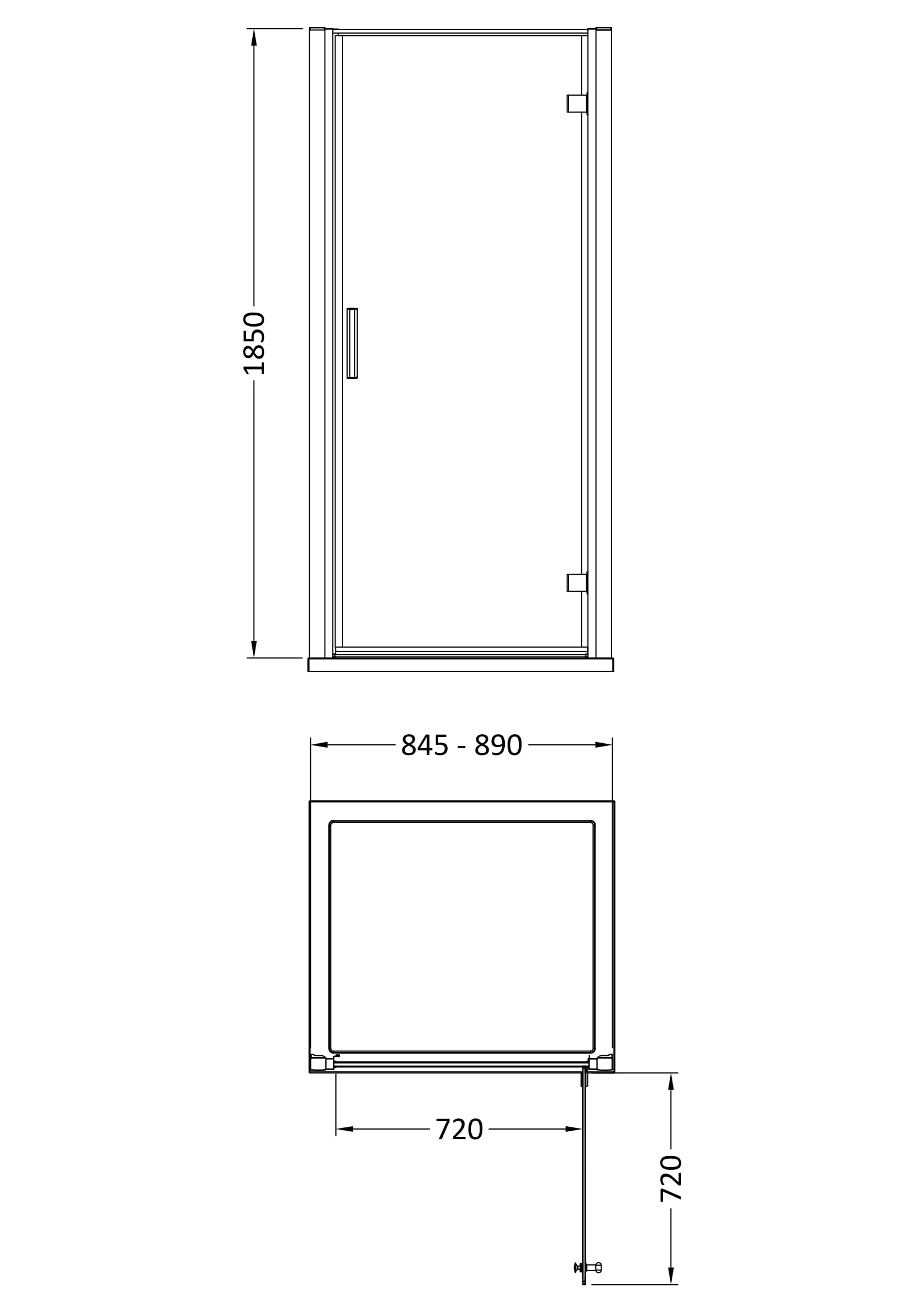 nuie Pacific 900mm Hinged Door - 6mm Glass - Polished Chrome