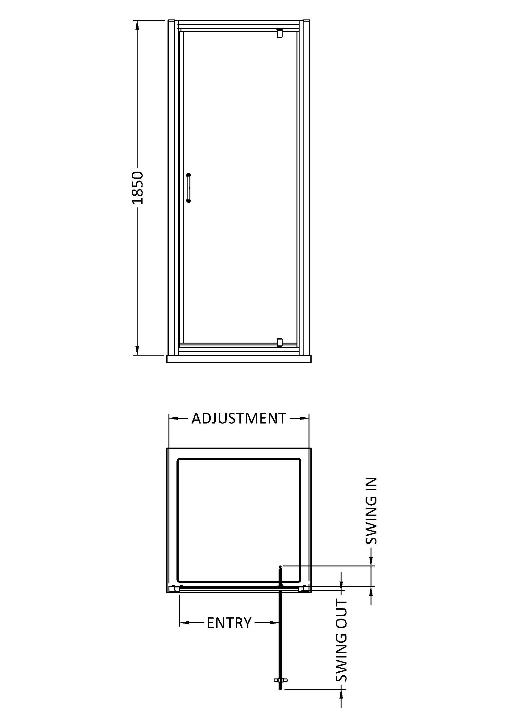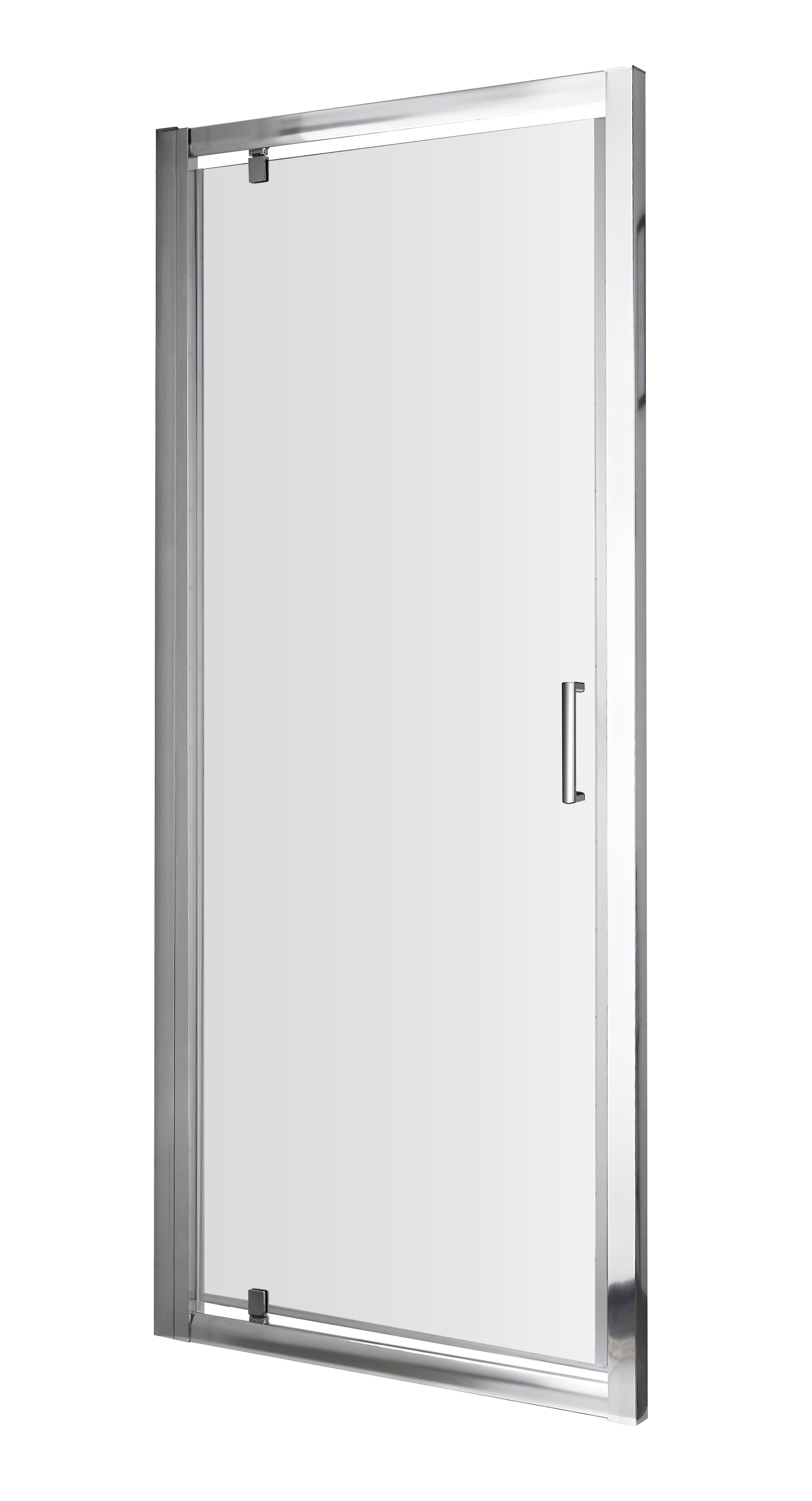 Chrome frame. Outward opening pivot door for easy access. 5mm toughened safety glass. Shower tray sold separately. Suitable for use with side panels or within a recess. Square D handle. Maximum adjustments will be reduced by 20mm if fitted with a side panel. All enclosures are backed by a lifetime guarantee.