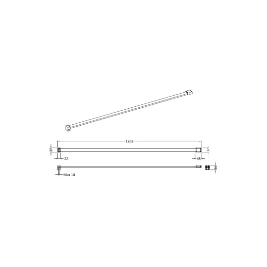 Wetroom Screen Accessories Flat Support Bar, 1202mm