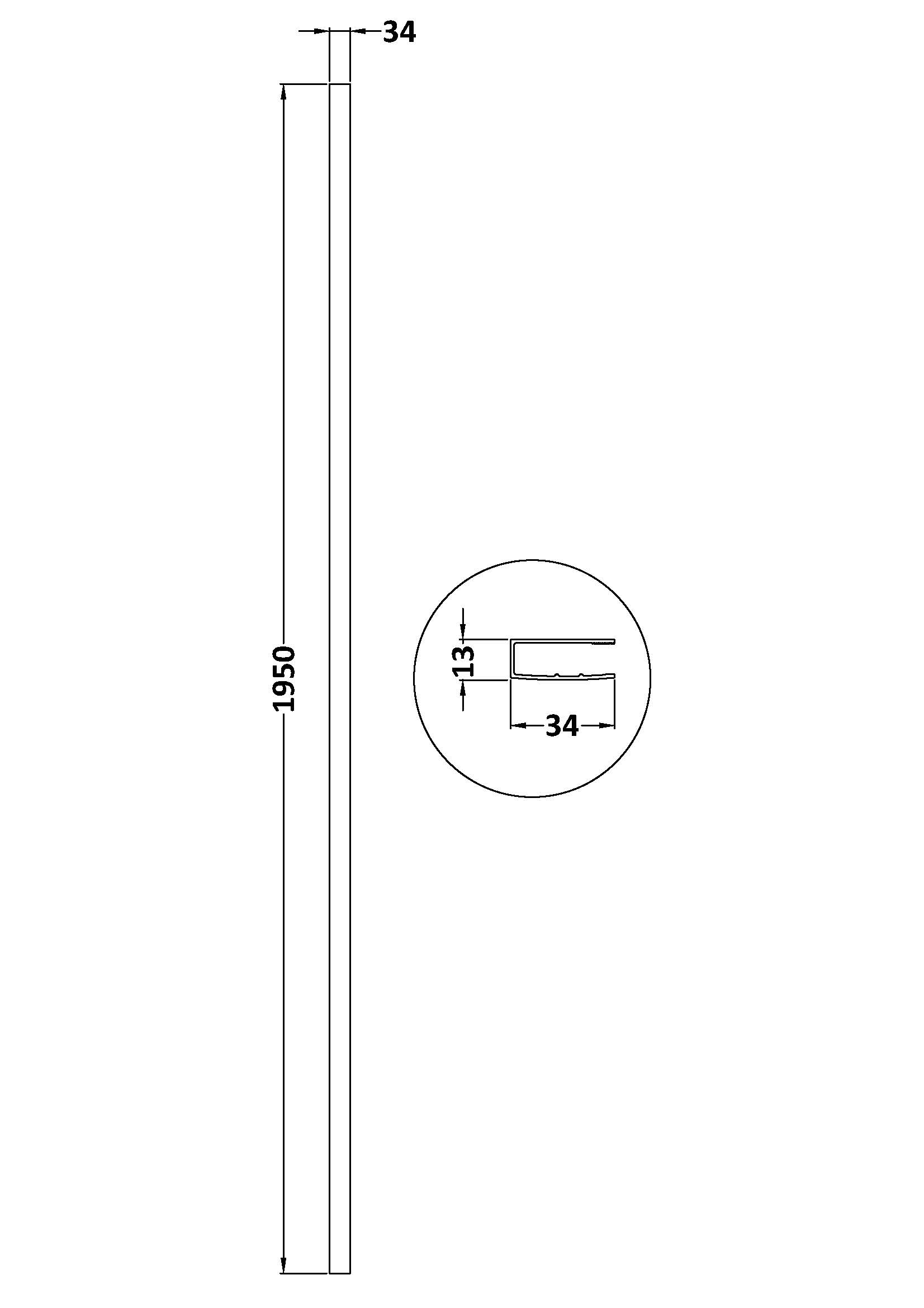 Hudson Reed Wetroom Wall Channel 1950mm Black - Matt Black