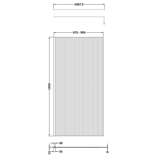 1000mm Fluted Wetroom Screen with Support Bar Matt Black