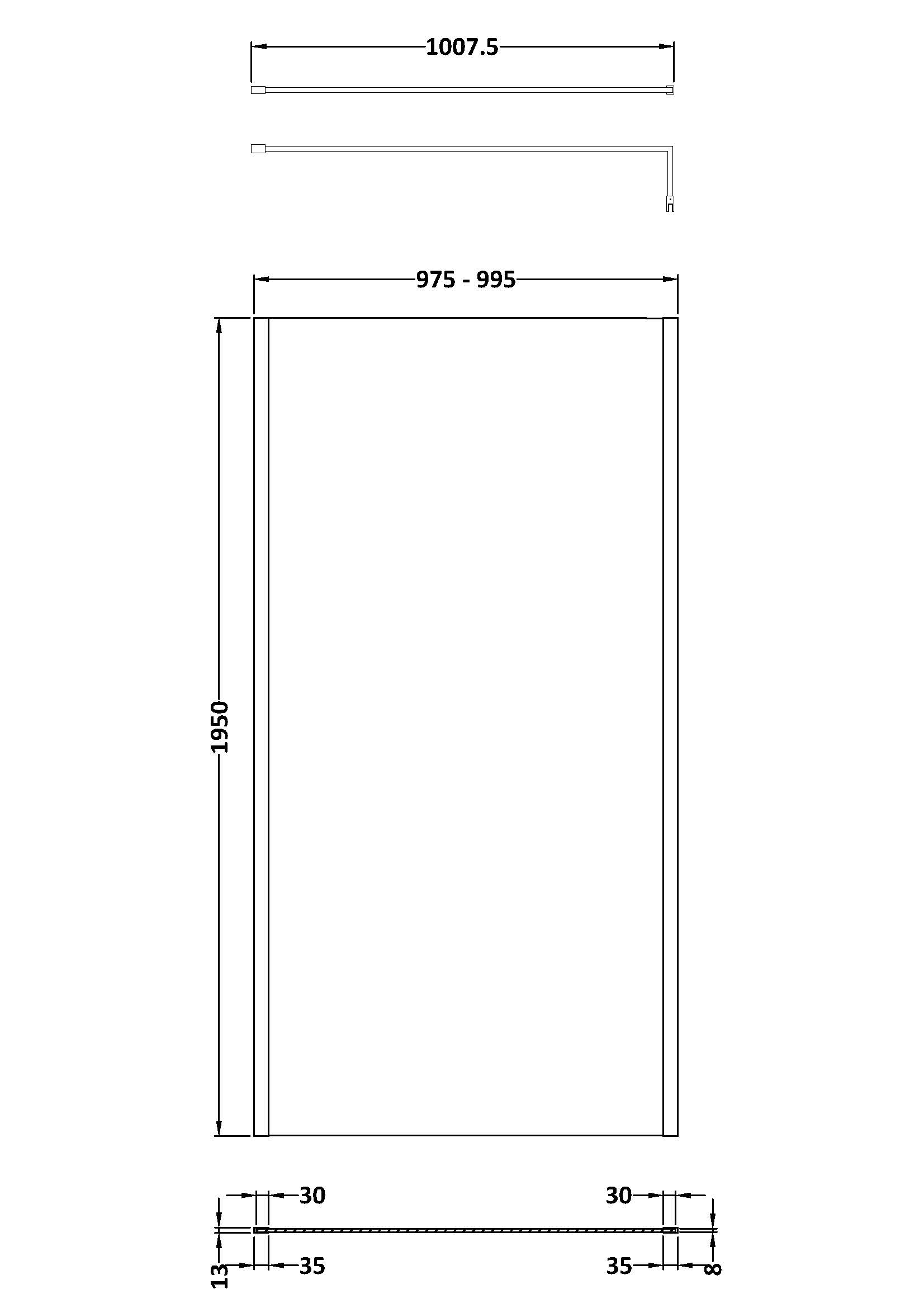 1000mm Outer Framed Wetroom Screen with Support Bar
