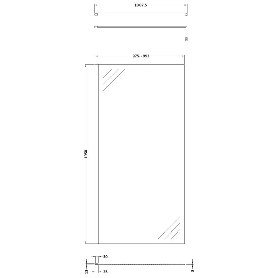 Minimum quantity for "1000mm Wetroom Screen With Black Support Bar" is