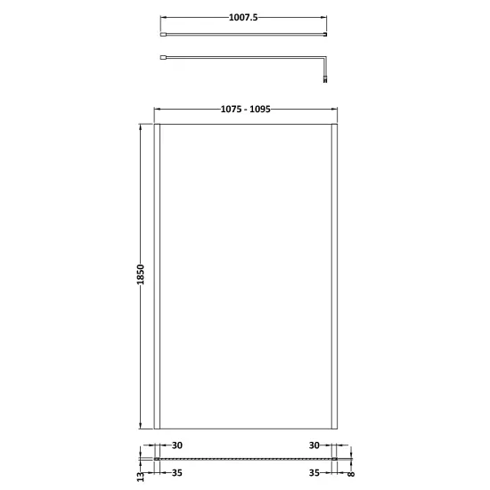 On trend design. 8mm toughened safety glass. Shower tray sold separately. Includes support bar and profile kit.