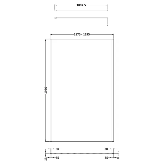 1200mm Outer Framed Wetroom Screen with Support Bar