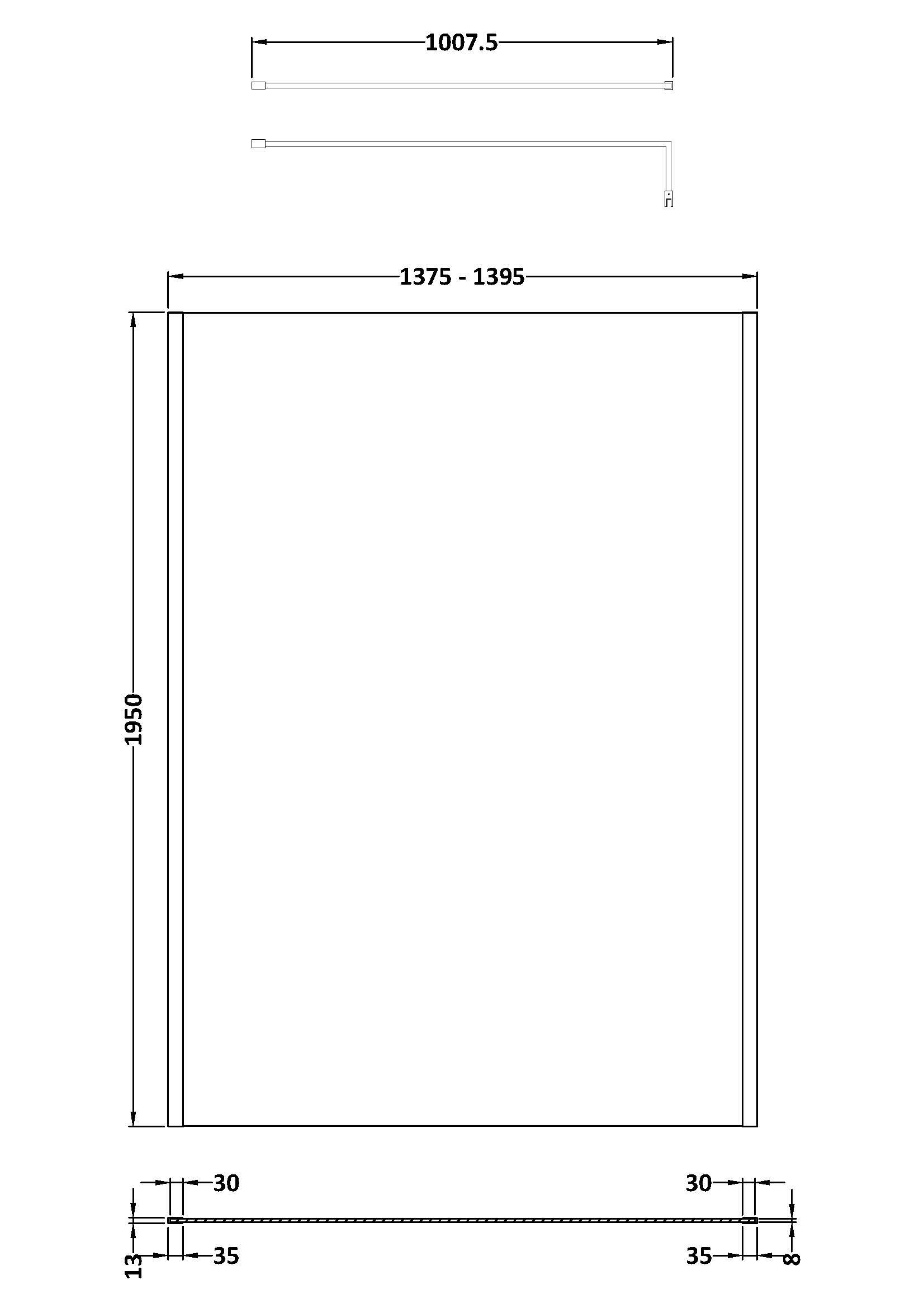 1400mm Outer Framed Wetroom Screen with Support Bar