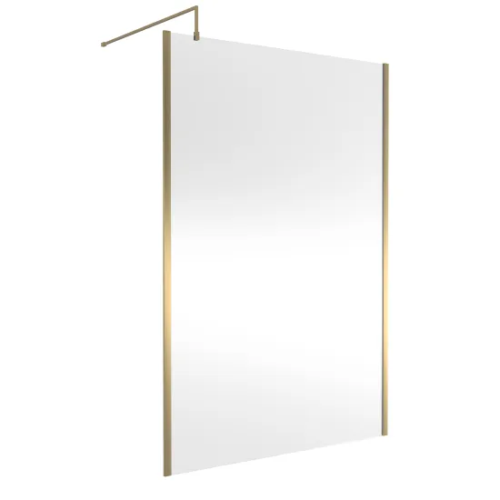 Hudson Reed 1400mm Outer Framed Wetroom Screen with Support Bar - 8mm Glass - Brushed Brass