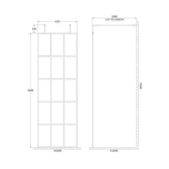 Hudson Reed 700mm Frame Screen with Arms and Feet - 8mm Glass - Matt Black