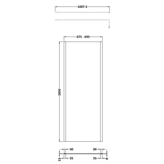 On trend design. 8mm toughened safety glass. Shower tray sold separately. Includes support bar and profile kit.