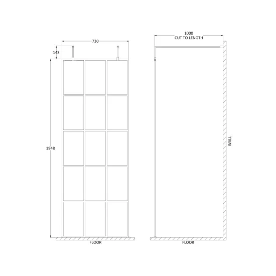 Hudson Reed 760mm Frame Screen with Arms and Feet - 8mm Glass - Matt Black