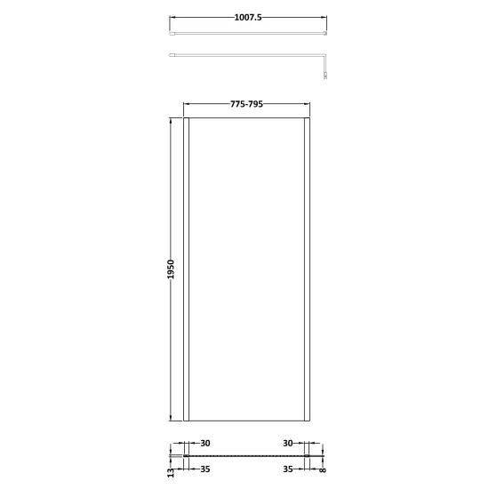 800mm Outer Framed Wetroom Screen with Support Bar