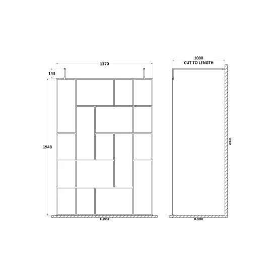 Hudson Reed Abstract 1400mm Frame Wetroom Screen with Support Bars - 8mm Glass - Matt Black