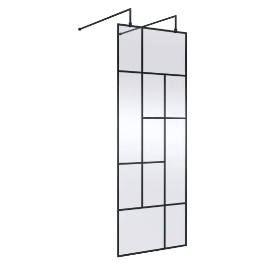 Hudson Reed Abstract 760mm Frame Wetroom Screen with Support Bars - 8mm Glass - Matt Black