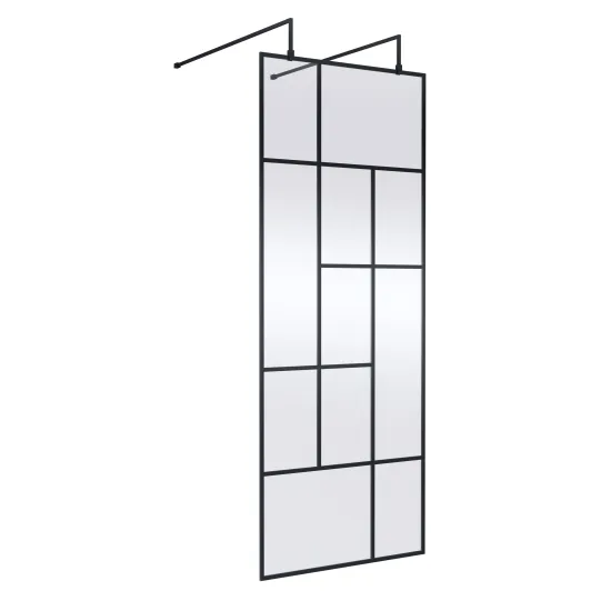 Hudson Reed Abstract 800mm Frame Wetroom Screen with Support Bars - 8mm Glass - Matt Black