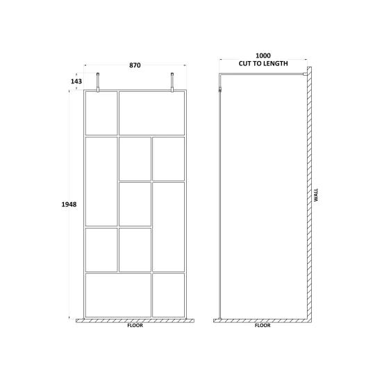 Hudson Reed Abstract 900mm Frame Wetroom Screen with Support Bars - 8mm Glass - Matt Black