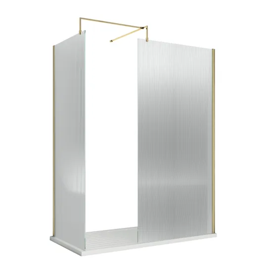nuie Fluted Wetroom Screens 800mmx1850mm Fluted Wetroom Screen Including Support Bar - Brushed Brass