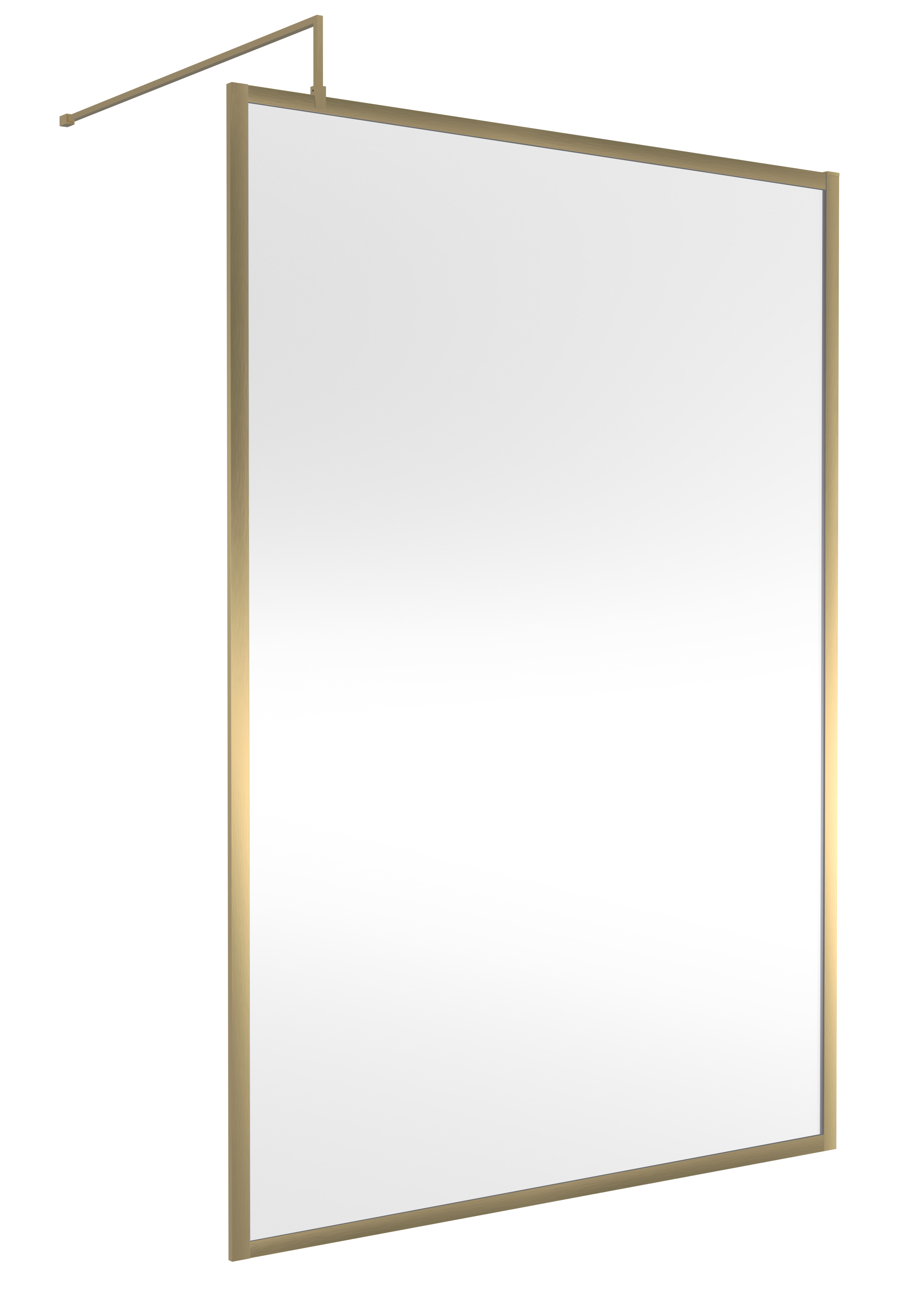 Hudson Reed Full Outer Frame Wetroom Screens Full Outer Frame Wetroom 8mm Toughened Safety Glass Screen & Support Bar 1950mm x 1400mm x 8mm - Brushed Brass